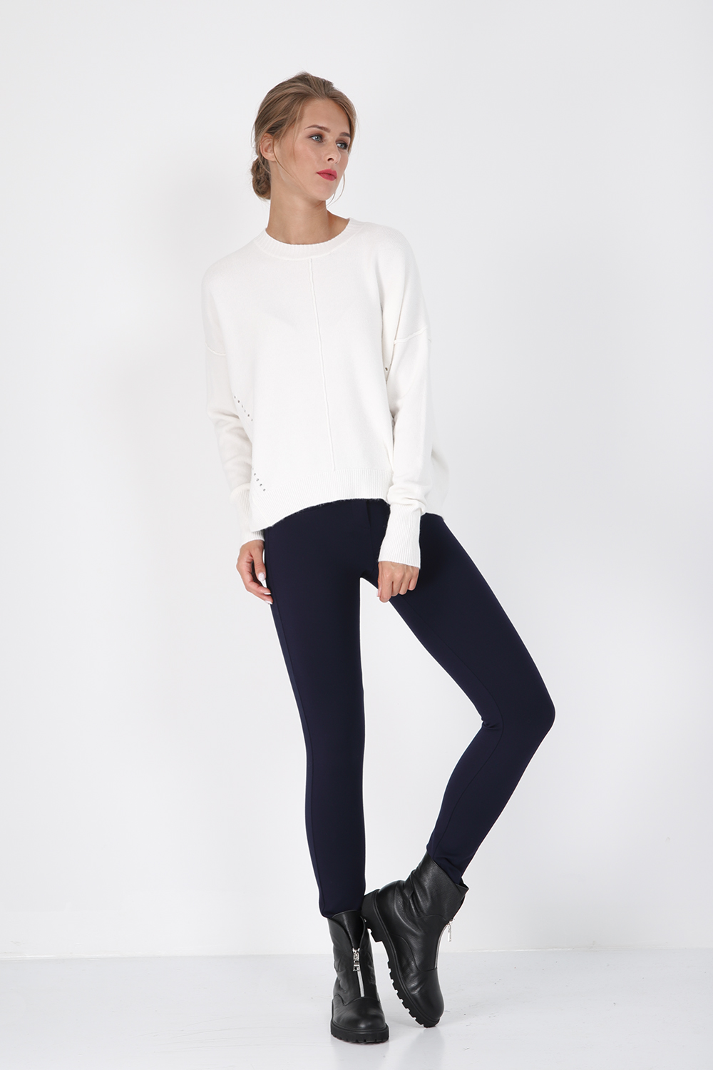 Брюки из плотного трикотажного полотна, зауженные к низу. Спереди отрезные бочки с декоративными карманами-обманками на молнии. Отрезной пояс со шлевками. Застежка на молнию и пуговицу. Сзади отрезная фигурная кокетка. Универсальные брюки на каждый день, сочетают в себе комфорт, практичность и актуальный внешний вид, хорошо комплектуются с большим количеством вещей.